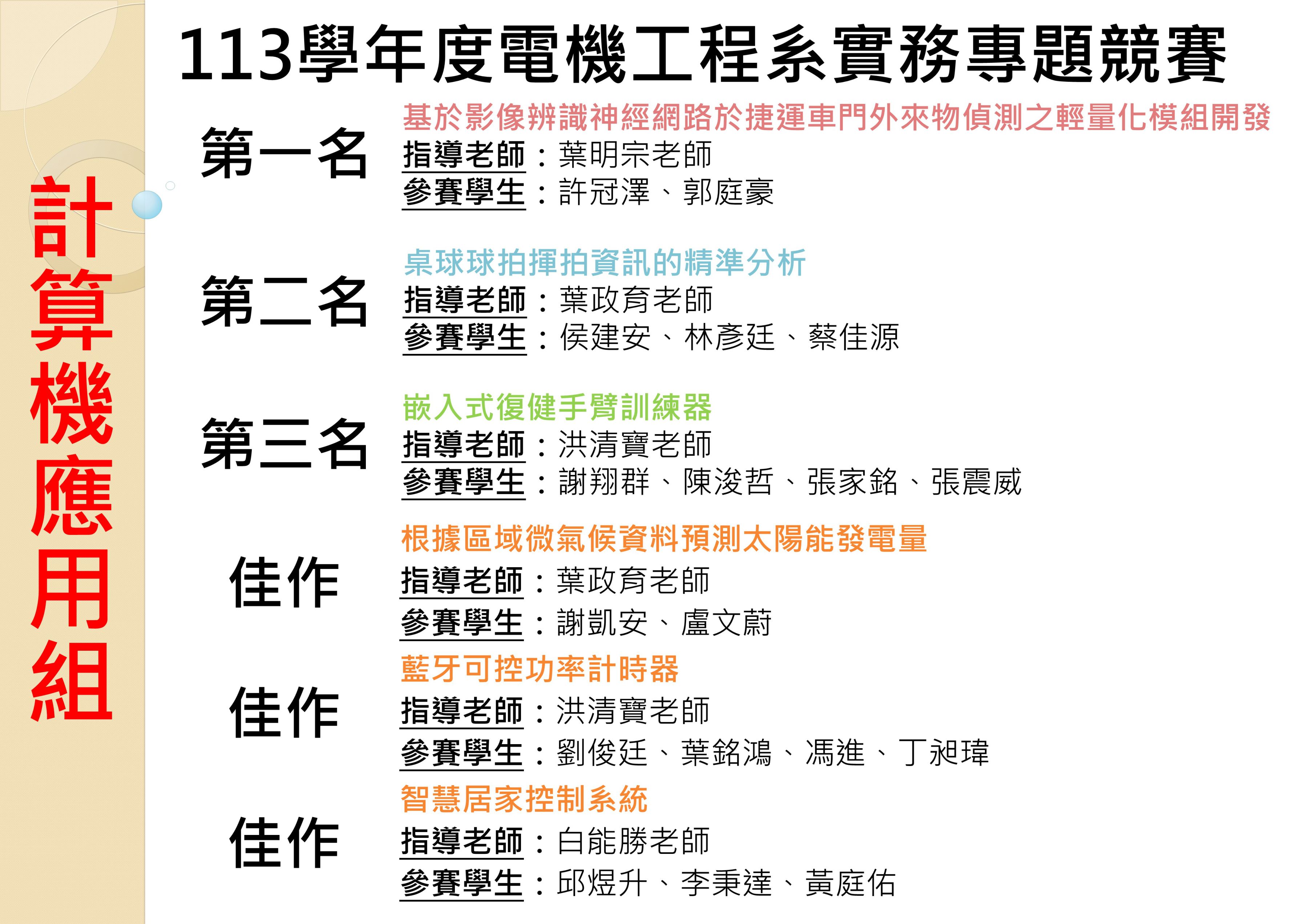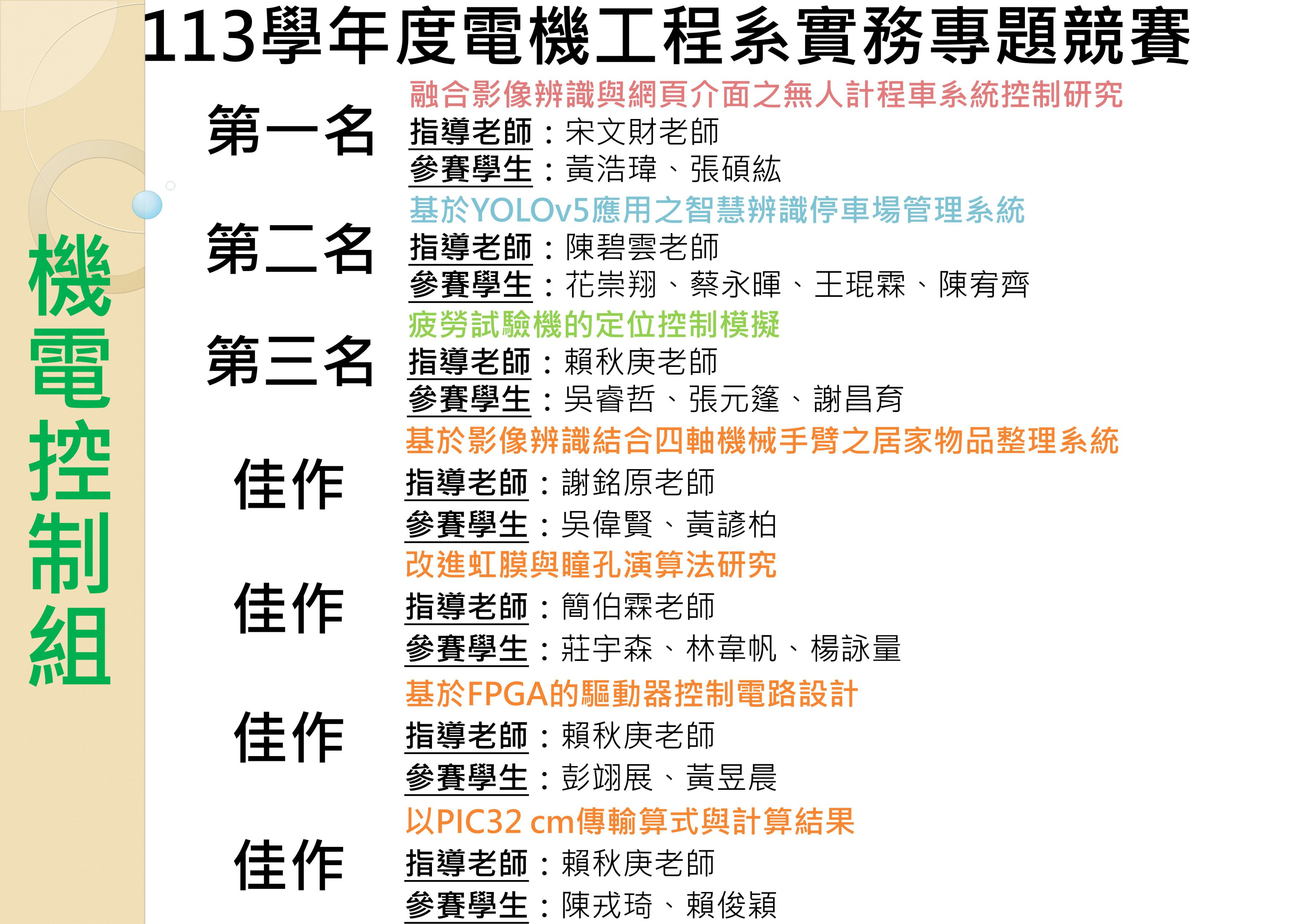 恭喜以下得獎同學,請於114-1開學後至系辦領取獎狀,並提供專題海報PPT檔案